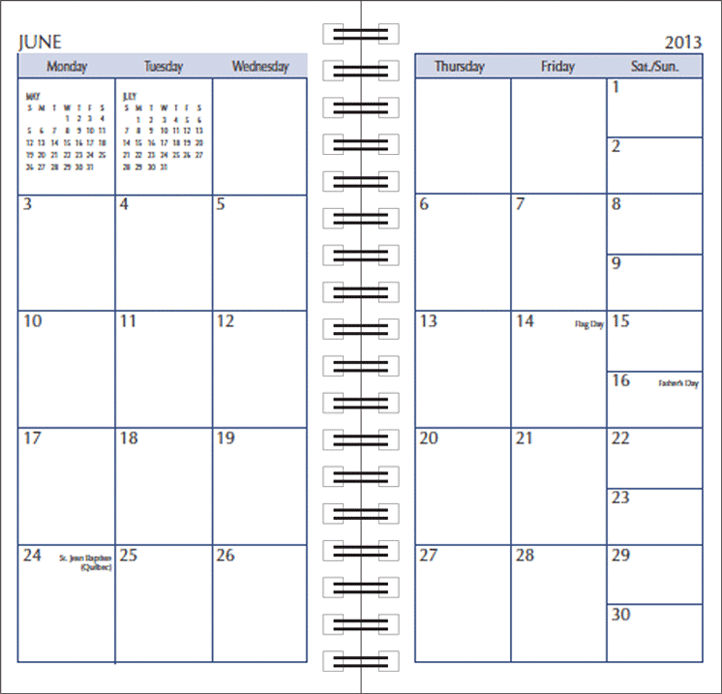 Features: 2015 Calendar Year. Sturdy wrapped leatherette cover. Spiral bound. Weekly and monthly format. Has reference information and spaces for phone numbers and birthdays/anniversaries.